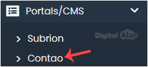 4. On the left side, locate the Portal/CMS category. Click on it and then on the Contao link that appears.